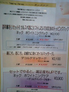 | サロンでも、トッピングのメニューをご用意しています。 お顔のパック中にネックまで しっかり保湿、美白させていただきます。 この時期は特に、おすすめのメニューです。 |