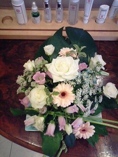 | みなさまこんにちは。 桜もそろそろ見おさめです。 新緑が美しい季節になってきましたね。 さて、先日お客様のT様から、 うれしいお届け物をいただきました。 アレンジメントのお花です! フラワーアレンジメントのお教室で作られた作品を、 ご親切にお店に持ってきて下さいました。 春らしい可憐なお花たちが、店内を華やかな空間にしてくれました。 なんだか空気もすがすがしくなって、 来店されるお客様はもちろん、私たちも癒されています。 お花のパワーをいただいて、 今日も美とリラックスの時間をご提供しようと思う日々です。 まだまだ空気は乾燥しています。 サロンで水分補給してもらって 春の日差しの中にお出かけしましょう! |
