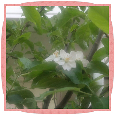 追伸 アスプロ店の入り口のリンゴの木に白くて可愛い花が咲きました。