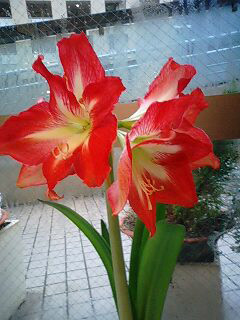 サロン内のアマリリスはみごと大輪を咲かせました。