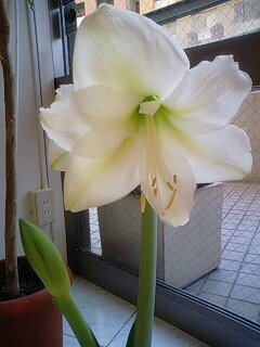 アマリリスのスノーホワイトが満開を迎えました。