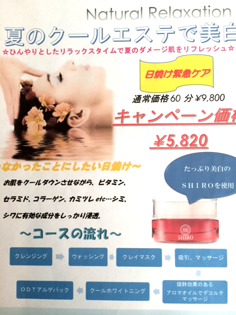 ただいま「夏のクールエステで美白」のお手入れキャンペーン中です。